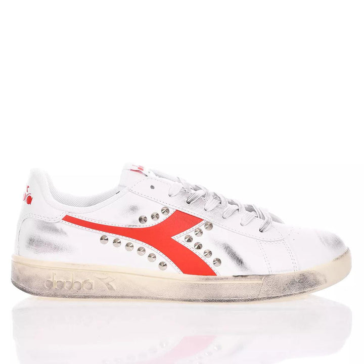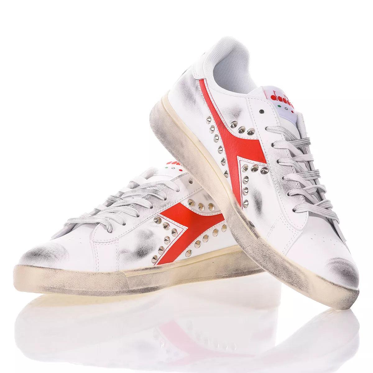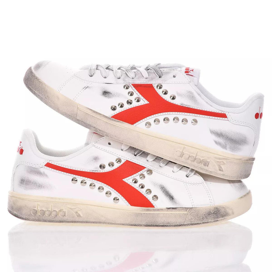 Diadora Red Studs ist der maßgeschneiderte Herren-Sneaker mit einem super Straßeneffekt von Schmutzflecken, die auch auf den original weißen Schnürsenkeln und den Nieten um das rote Logo nachgebildet wurden und ihm einen perfekten Rockstil verleihen.