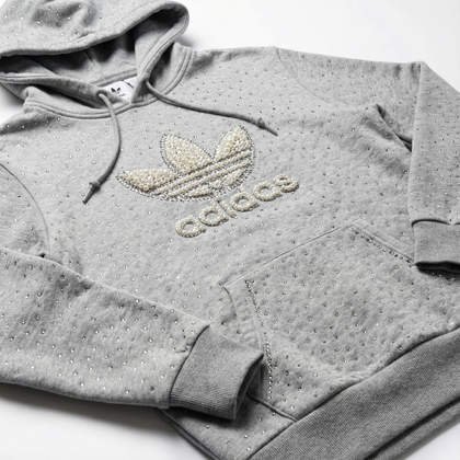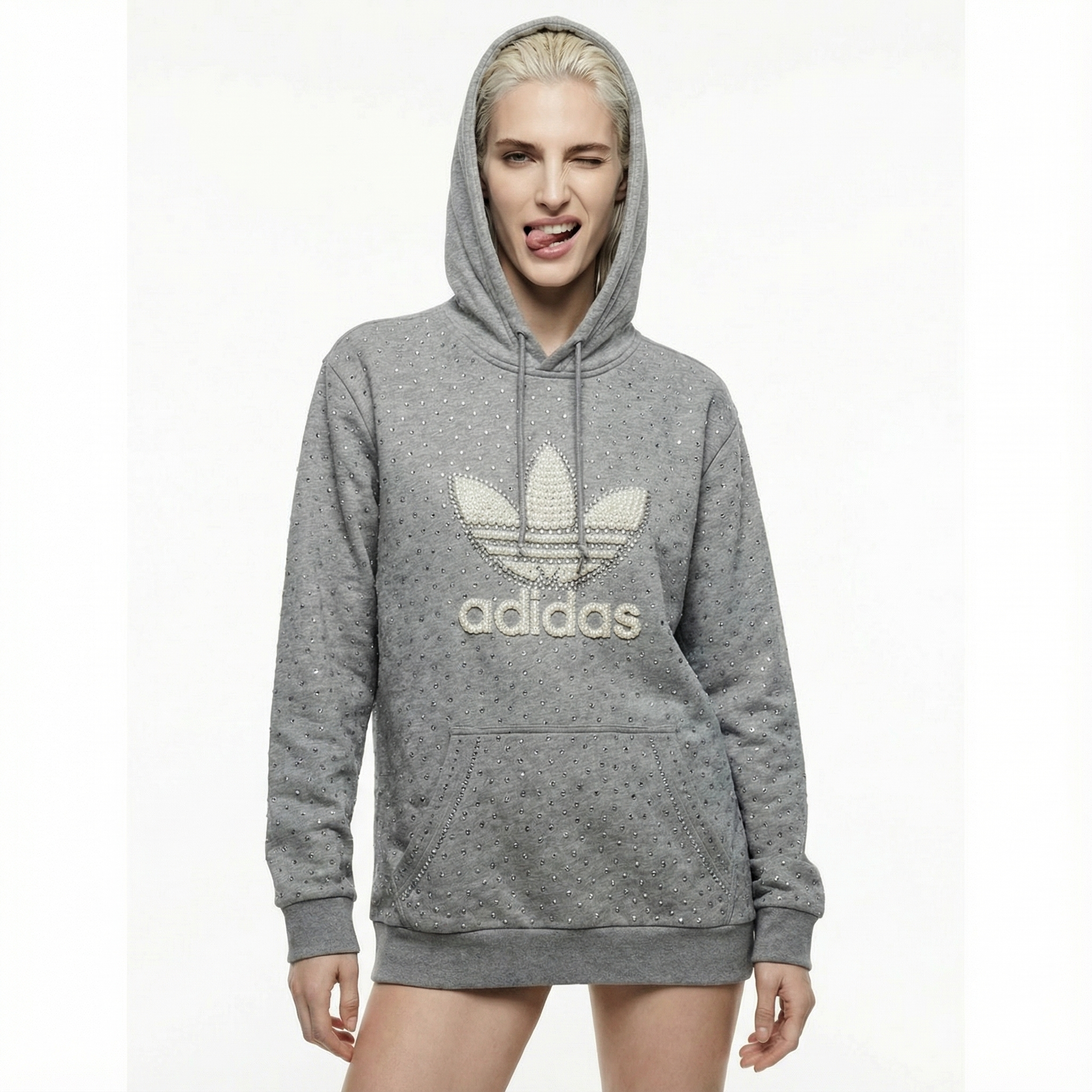 Grauer Adidas Kapuzenpullover Perlen & Swarovski