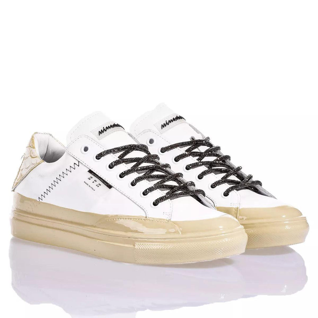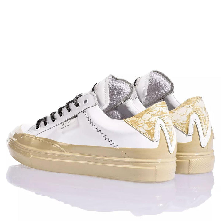 - Rindleder-Fersenverstärkung mit Python-Druck in Weiß/Beige