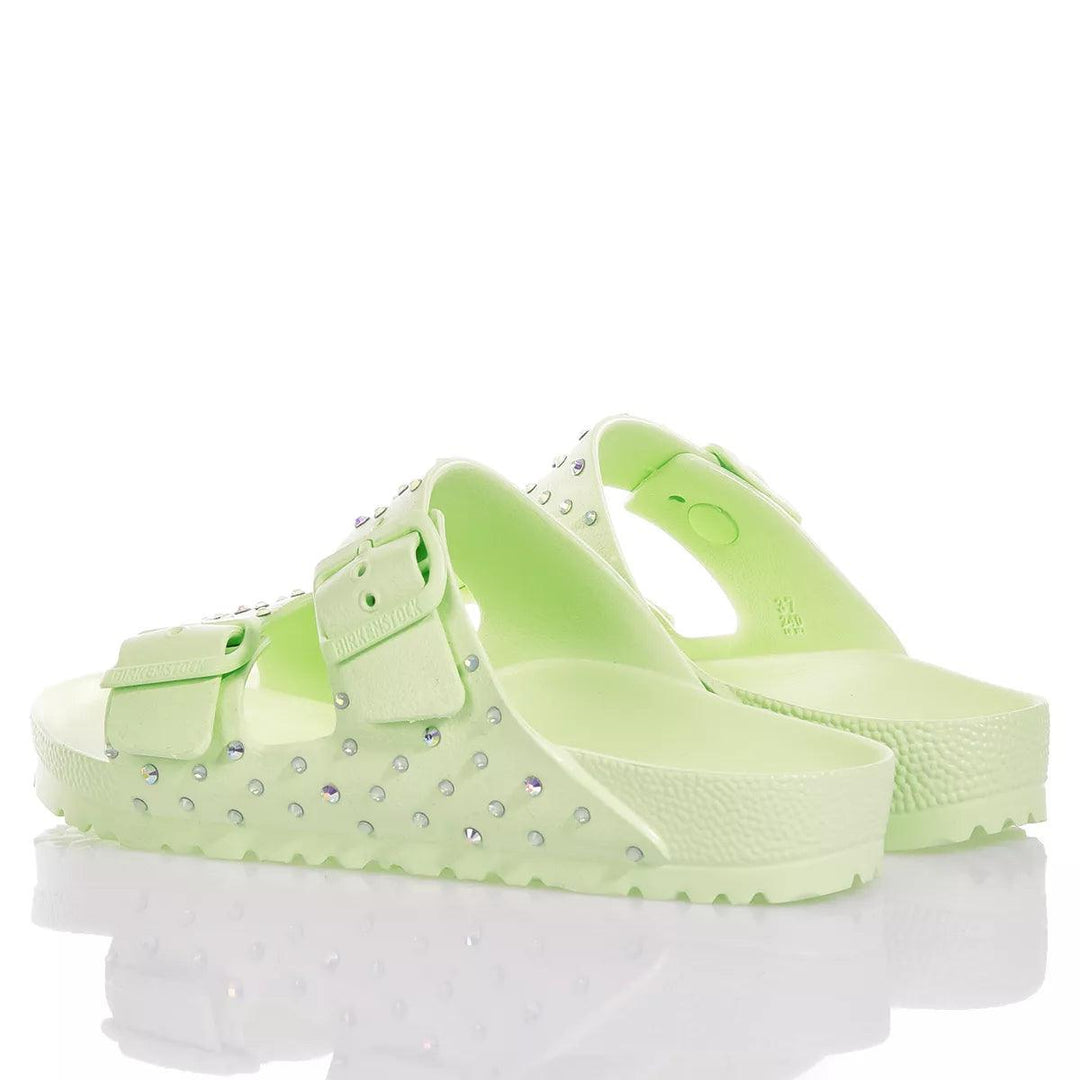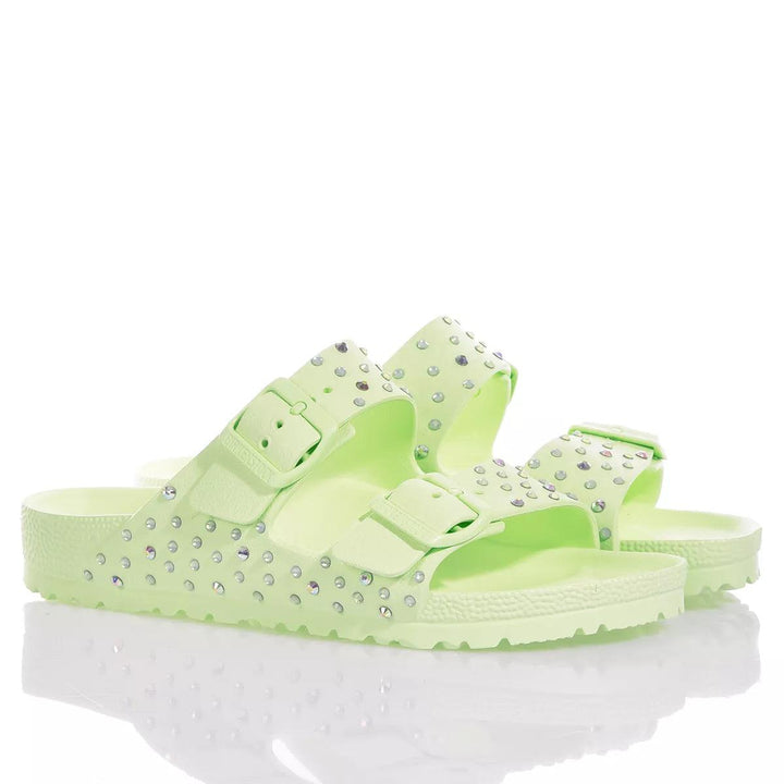 Birkenstock Arizona Lime Swarovski is the model that makes your summer a mix of comfort & uniqueness. The lime-colored base is covered with hand-applied, bi-colored Swarovski gems, one by one, for a bright, fresh, and super versatile effect, suitable for both day and night.