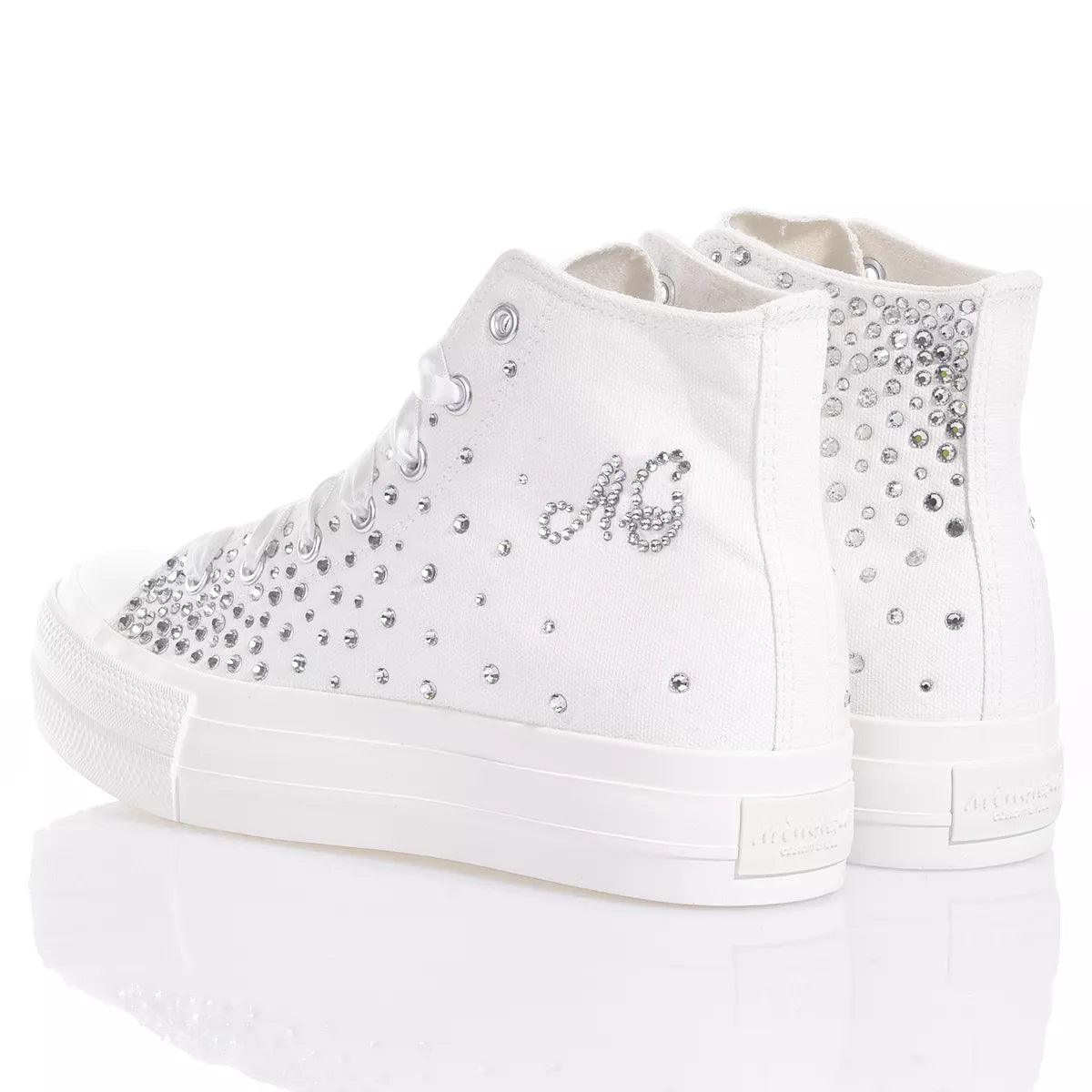A cascade of Swarovski crystals and customization with your own initials in Swarovski make these sneakers unique and special. Wearing Mimanera Airlines Platform Lovefool sneakers means standing out with style on every occasion.