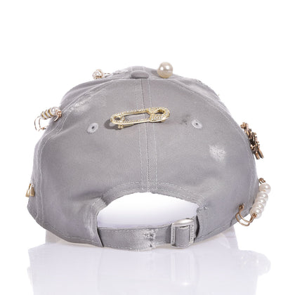 New Era Grey Pin is a one-of-a-kind custom cap, featuring a grey base adorned with oversized pins that blend the elegance of pearls with the sparkle of Swarovski crystals. Every detail has been carefully chosen to create a striking contrast between urban style and the sophistication of the materials. Perfect for those who want to stand out with character and originality.