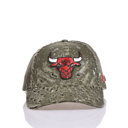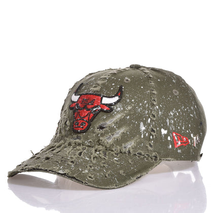 New Era Old Green Bulls: A custom cap with a military green base and iconic embroidered logo. The scratched and vintage effects give the cap an authentic street look, while the color splashes add a burst of energy and originality. An accessory that blends streetwear and boldness, made for those who want to make their mark with style.