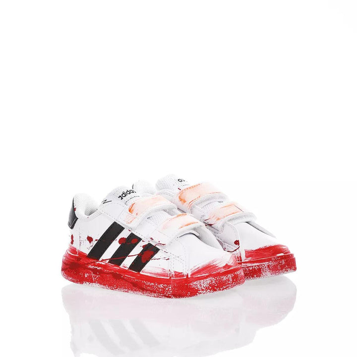 Adidas Baby Watermelon es la zapatilla personalizada con colores primaverales. Toda la silueta adquiere un estilo urbano y atrevido con salpicaduras rojas, mientras que un recubrimiento en tono en la parte inferior le da ese toque extra frente a las demás. Para combinar perfectamente con los modelos Junior y Adulto, se ha añadido una pincelada naranja neón en la parte de los velcros.