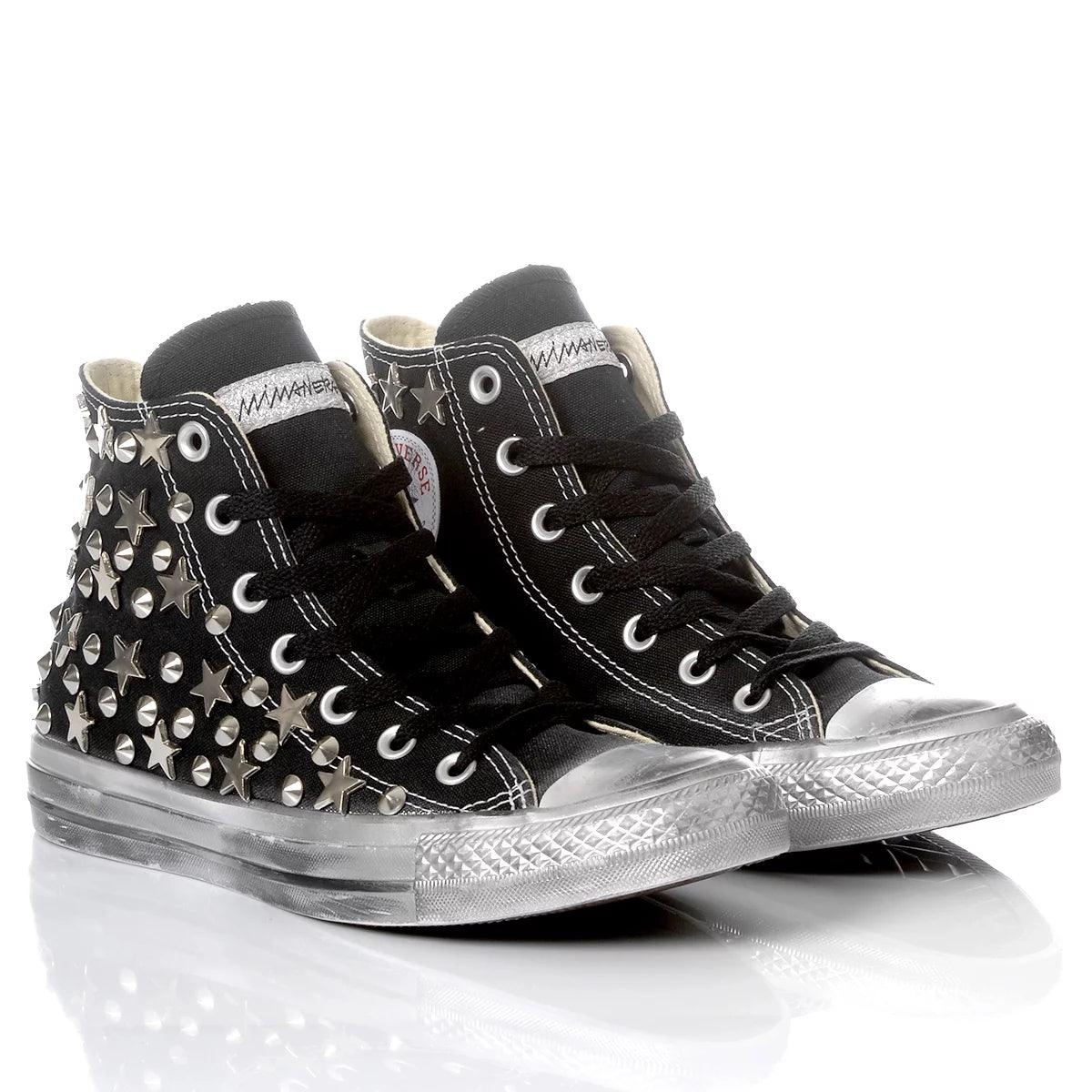 Converse All Star Stardust, véritable et propre poussière d'étoiles aux pieds! Clous argent classiques mixés avec celle à étoile sur le coté externe rendent ce modèle de sneakers adapté à homme et femme, particulières mais versatiles, saura comment compléter chacun de tes look. La Converse Stardust te sera fournie avec des lacets noirs et ses originaux blancs. Pour un majeur confort, nous te proposons notre semelle plantaire soulève-talons qui te donne quelques centimètres en plus et une silhouette plus élancée immédiatement.