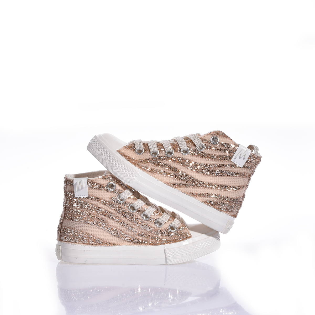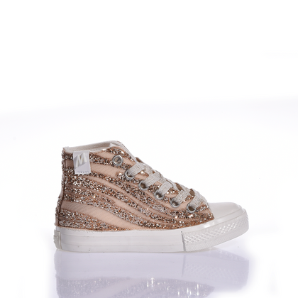Mimanera Airlines Baby Sand Wave : les sneakers qui transforment chaque moment en fête. Fabriquées avec des détails en dentelle beige délicate et des finitions scintillantes qui captent la lumière, ces chaussures allient élégance et polyvalence. Parfaites pour les cérémonies spéciales ou pour le jeu quotidien, elles offrent confort et style sans compromis.