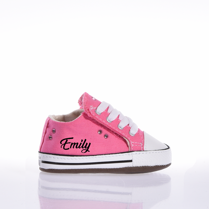 Incidi il nome della nuova piccola e lascia brillare i cristalli Swarovski rosa applicati a mano su ogni scarpina rosa. Un regalo straordinario che celebra l'unicità della neonata con stile e eleganza. Perfetto per chi vuole regalare qualcosa di veramente speciale, un pezzo che diventa ricordo indimenticabile.