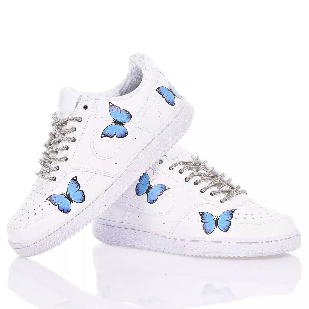 Nike Butterfly Blue è la sneaker da donna, la silhouette è arricchita da stencil di farfalle color azzurro e dal preziosissimo laccio swarovski crystal.