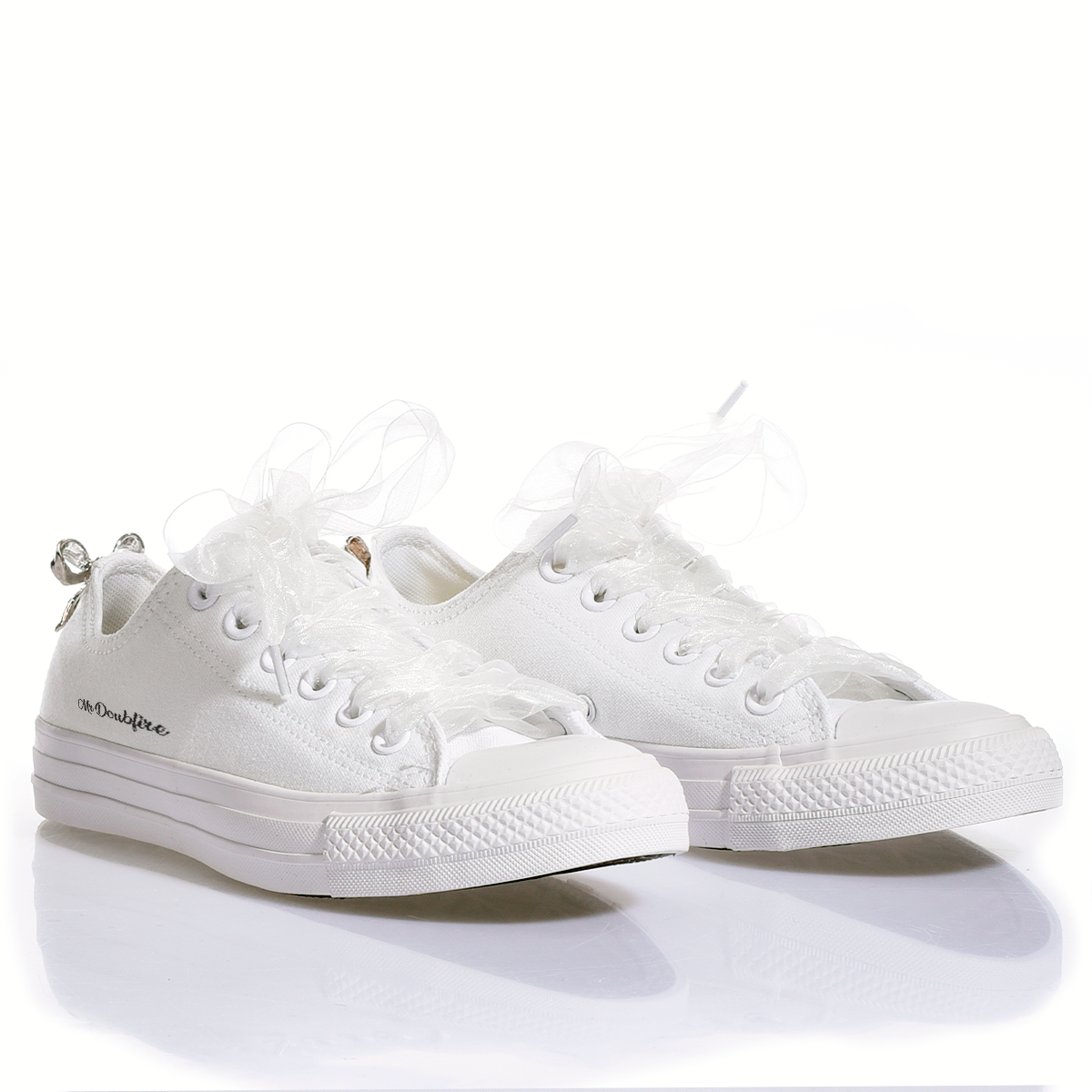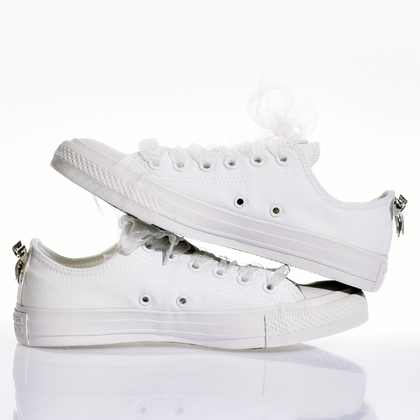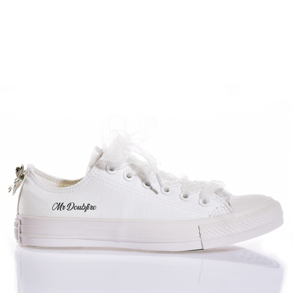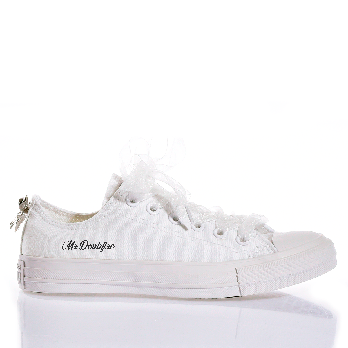 Świętujcie Waszą miłość w dobrym stylu: personalizowane Converse Mr & Mrs OX z Waszymi nazwiskami. Te kultowe niskie sneakersy zmienią Wasz wyjątkowy dzień w niezapomniany dodatek, idealny na nowoczesną ceremonię lub do uwiecznienia najsłodszych chwil.