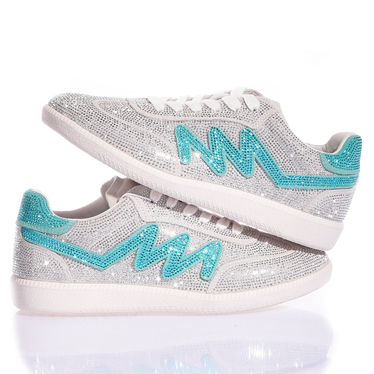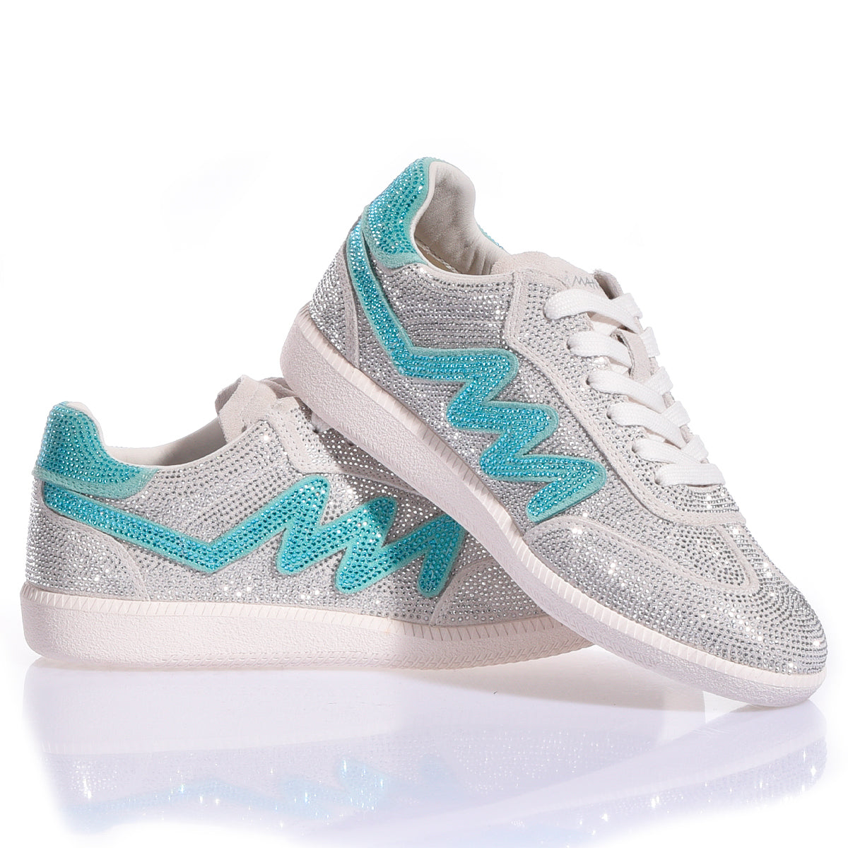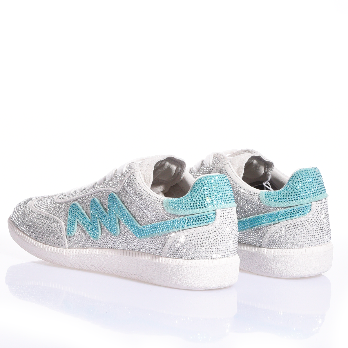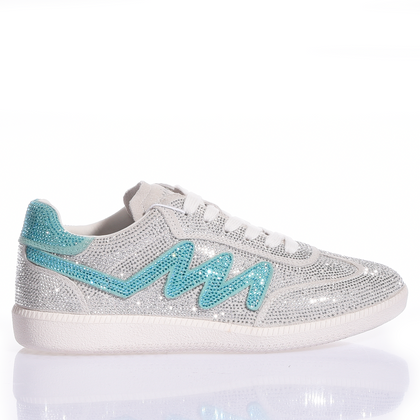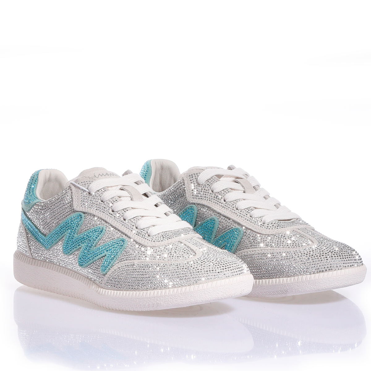Ikona stylu, która przywołuje na myśl ponadczasową elegancję i najczystsze wyrafinowanie. Dubai Imperial Tiffany to biżuteria, którą można założyć na stopy: cholewka stanowi nieskończoną przestrzeń kryształków Swarovskiego, które lśnią z lodowatą intensywnością, tworząc przy każdym kroku hipnotyzujący efekt lustra. Tym, co czyni te sneakery produktem kolekcjonerskim, jest charakterystyczna litera „M”, wykonana w całości z kryształków Swarovskiego w kolorze Tiffany.