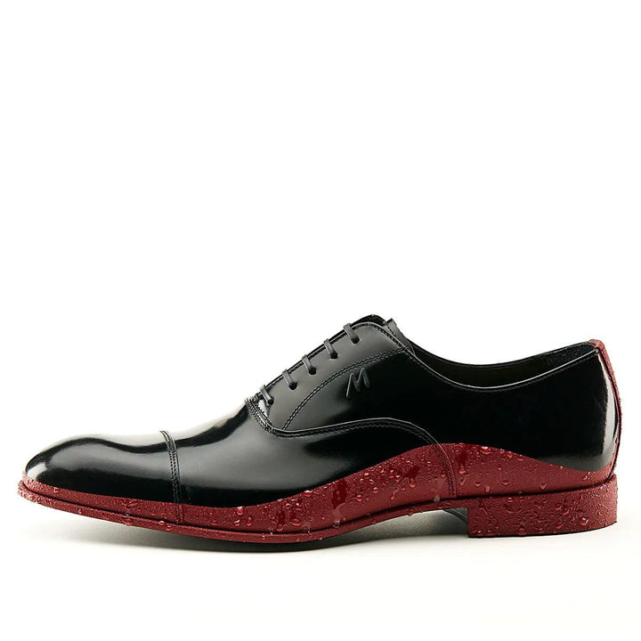 Mimanera Showman Red Carpet è in pelle nera con sinuoso dettaglio rosso opaco su parte di suola e tomaia, redo ancora più particolare dall'effetto goccia trasparente. L'inconfondibile "M" di Mimanera aggiunge un tocco esclusivo al design. Perfetto per occasioni speciali, è la scarpa ideale per chi cerca lusso ed eleganza senza compromessi.