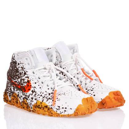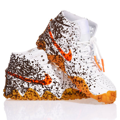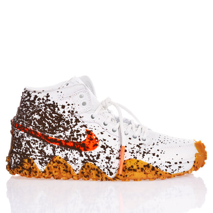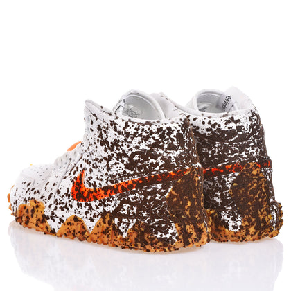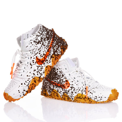 Nike Air Jordan 1 Vibram Brown Flock to idealne połączenie dziedzictwa i innowacji. Kultowa baza modelu Jordan zyskuje nowy wymiar dzięki otulającej podeszwie Vibram w kolorze bursztynowym, która nadaje butowi siłę i charakter. Swoosh w specjalnym gumowanym wykończeniu w jaskrawym pomarańczowym kolorze przyciąga wzrok nowoczesnym kontrastem, a natryskowy brązowy efekt flokowania dodaje cholewce i podeszwie głębi oraz unikalnej tekstury. Sneakersy stworzone dla tych, którzy chcą się wyróżniać stylem i osobowością.