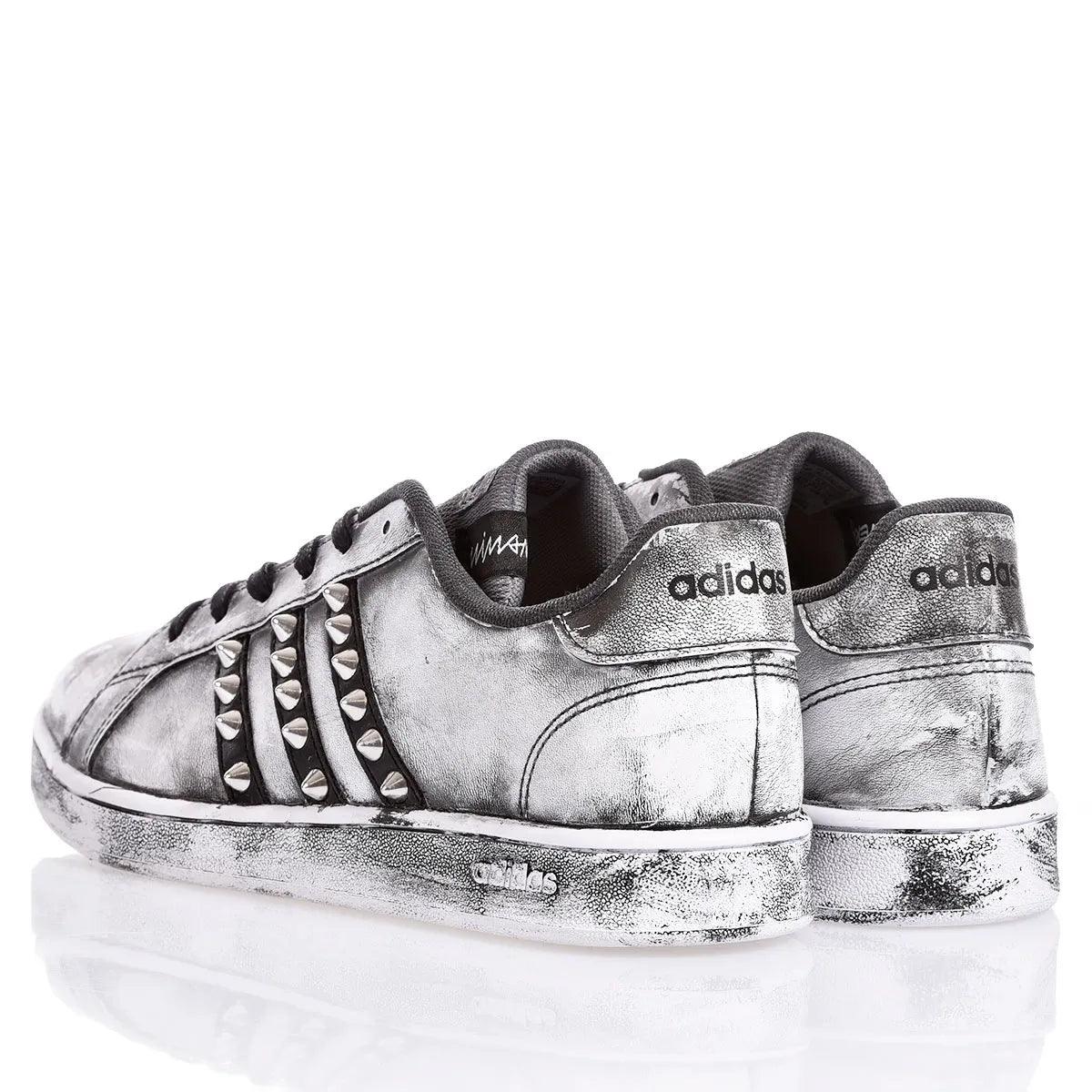 The Adidas Brooklyn are the perfect expression of an urban and bold look. Fully washed for a worn-in effect, these sneakers stand out for the studs applied to the iconic three Adidas stripes, adding a touch of attitude and character. The look is completed with black waxed flat laces.