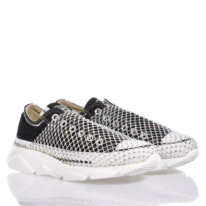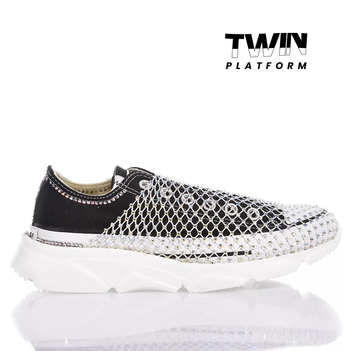 Converse Fishnet Swarovski is the custom sneaker that doesn't compromise! Precious, comfortable, and sparkling, this sneaker with its innovative and lightweight double sole structure will make you stand out with every step, giving you even a few extra centimeters. The iconic Converse model meets Mimanera's style and is adorned with a special elastic fishnet studded with Swarovski crystals. Easy and comfortable to wear just like a sock, you won't even need to lace it up.