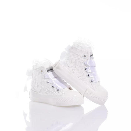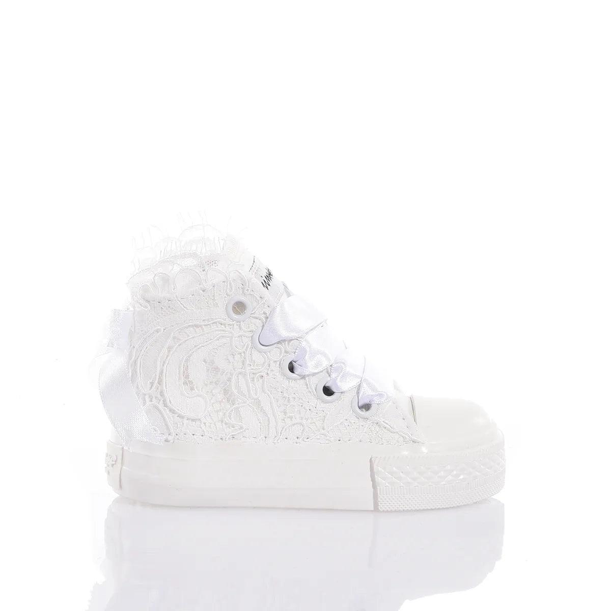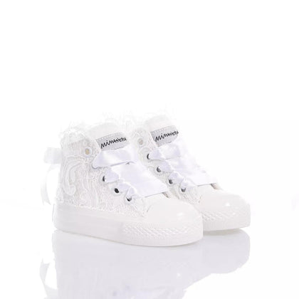 Mimanera Airlines Baby Amabel is inspired by the classic Converse model; these sneakers offer a completely white sole and maximum comfort with every step.