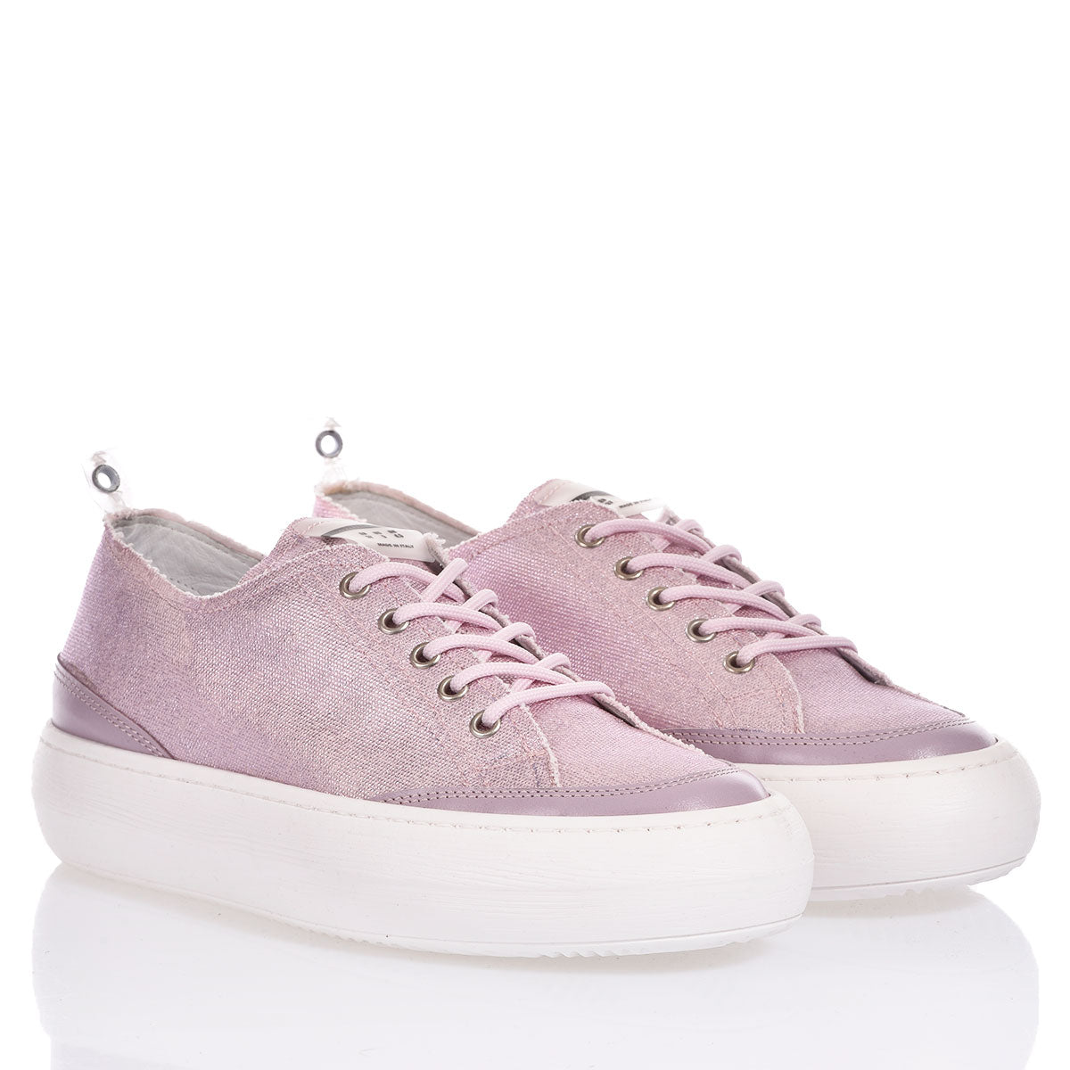 Mimanera Stone Pink Glittery : è la sneakers comoda e versatile in pregiato tessuto glitter rosa e lacci swarovski.