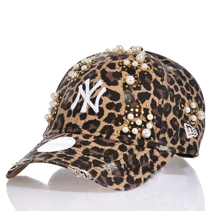 New Era Leo Pearls is the custom cap that blends a wild soul with luxury details. The leopard print base is enriched with pearls, Swarovski crystals, and delicate vintage effects, creating a bold yet sophisticated look.