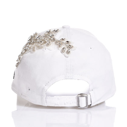 A custom cap with a clean yet striking design, created for those who love to stand out with style. Made in total white, this New Era model is embellished with Swarovski crystals on the front logo, adding a refined and luminous touch.