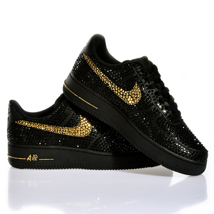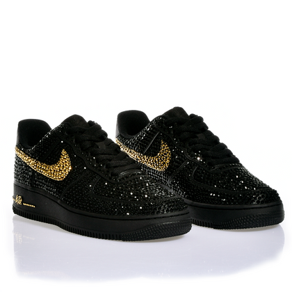 Nike Air Force 1 Luxury Dark Halo: sneakers that turn style into art. Elegant black with the iconic contrasting swoosh and gold details that catch the light. Each pair is hand-studded with sparkling Swarovski crystals, creating a mesmerizing luminous effect. Perfect for those who want to shine without shouting. Subtle luxury, maximum impact.