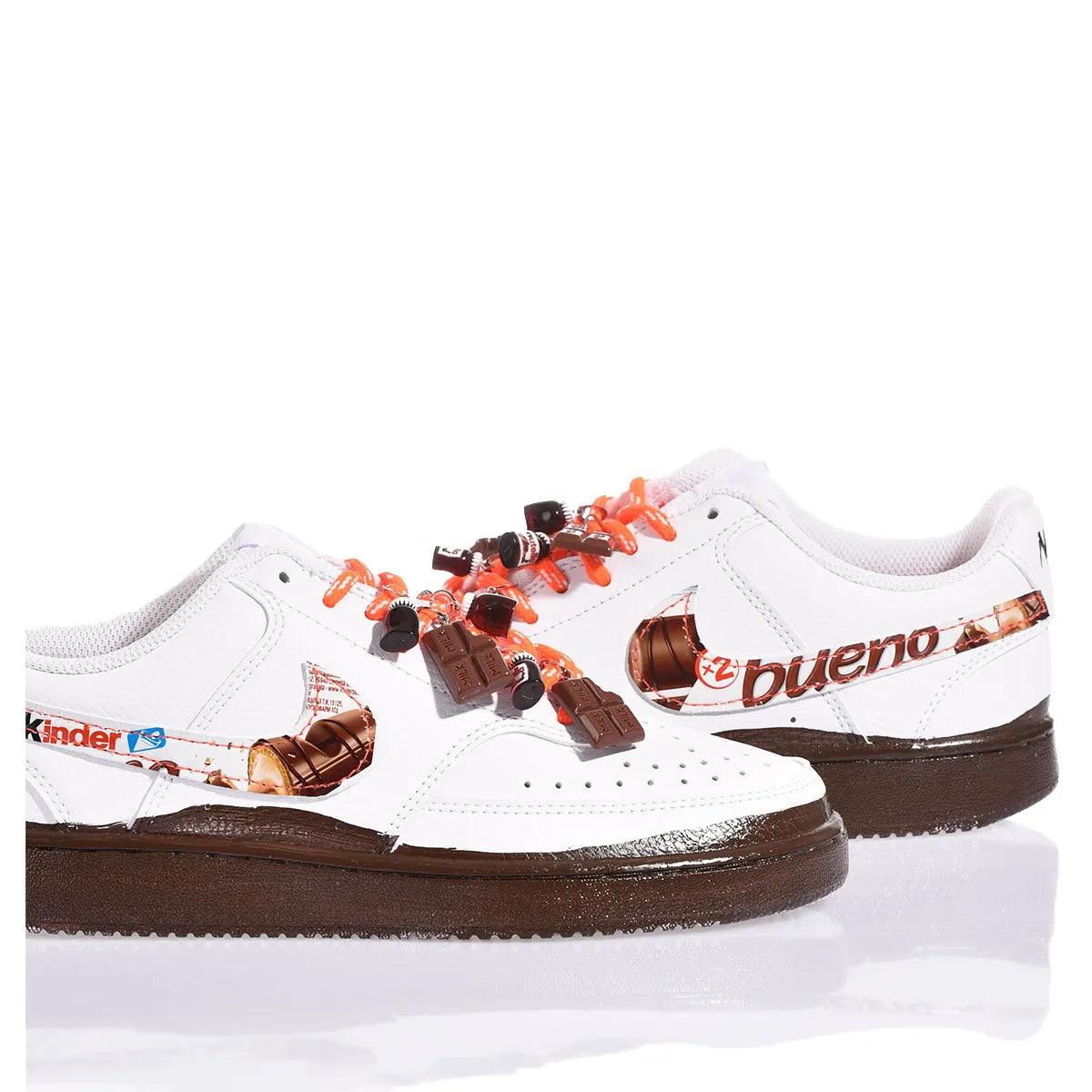 Discover the perfect blend of style and sweetness with Nike Chocolate, the custom sneaker inspired by the world of chocolate. Featuring a chocolate-drip effect on the sole and a swoosh wrapped in iconic foil.The look is completed with themed charms for a deliciously unique design.