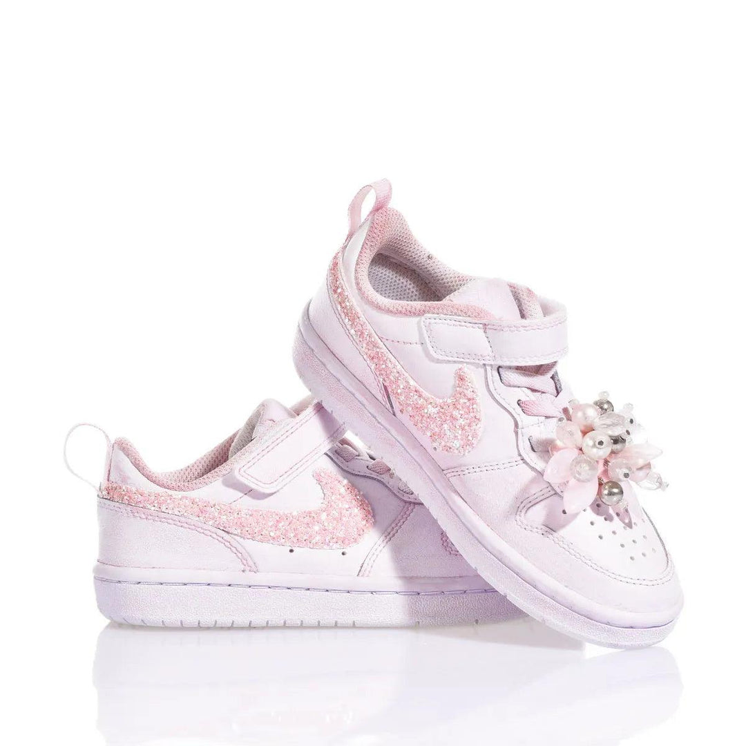 Nike Junior Pink Ice è la sneakers che unisce delicatezza e lusso in un design unico anche per le bambine. Interamente delavate in un delicato rosa, queste scarpe emanano dolcezza. Il vero punto forte è il gioiello rimovibile con perle e pietre sulla parte dell'allacciatura, che dona un tocco di raffinatezza e brillantezza. L'iconico swoosh invece, rivestito di glitter rosa, aggiunge un ulteriore dettaglio scintillante, per un look che non passa inosservato.