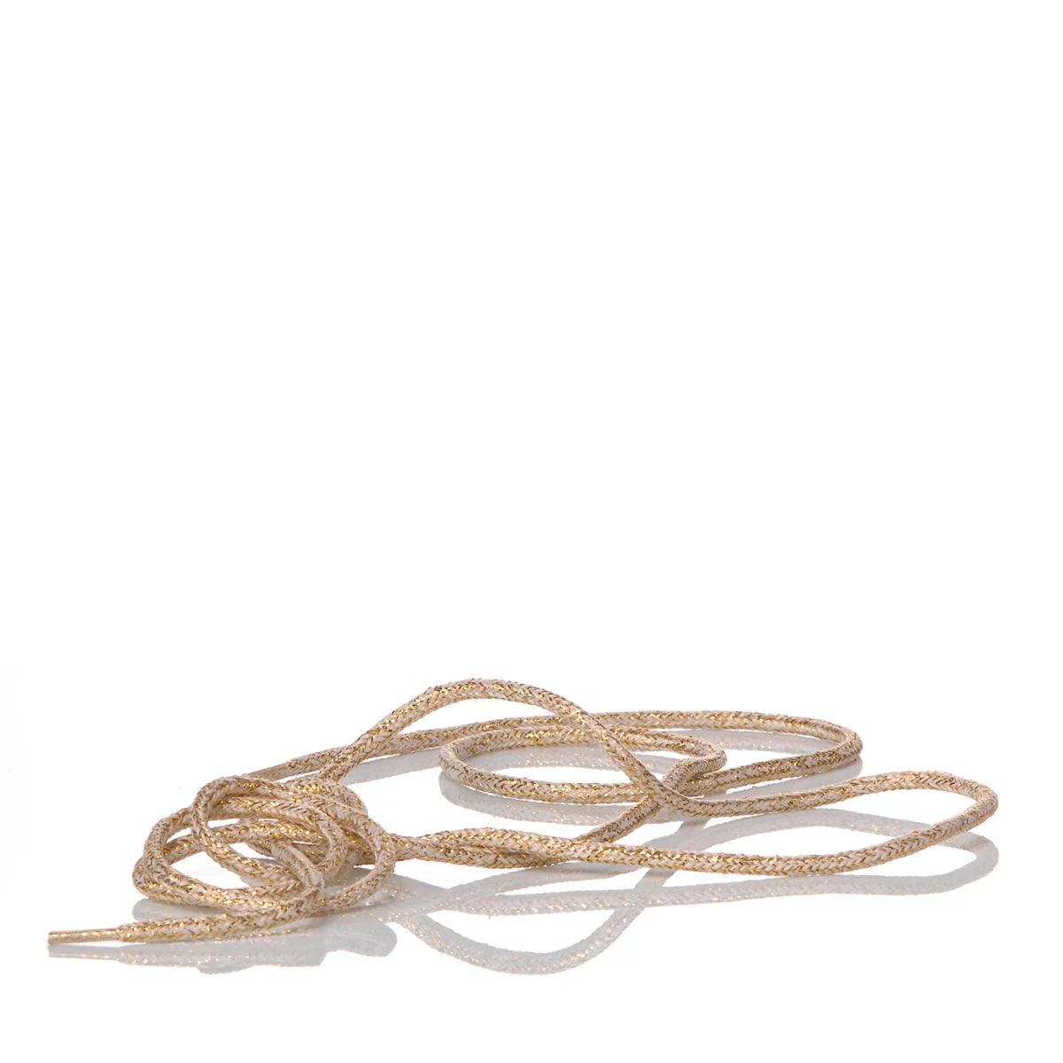 Round white gold laminated shoelaces. Length suitable for Adidas, Converse, Dr. Martens and mid-calf boots.